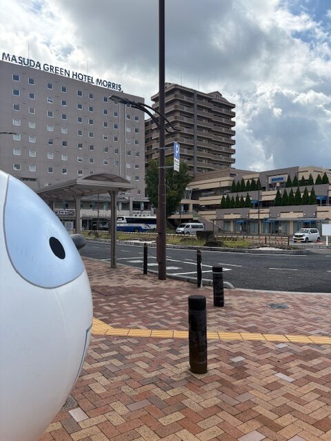 石見交通バス乗り場の前あたりだビュン!!(ホテルに沿って行ってみてね)