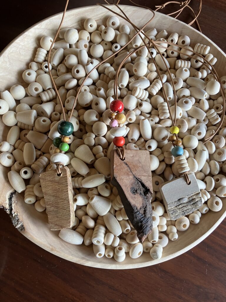 皮ひもと木のビーズを組み合わせてオリジナルストラップを作りませんか?