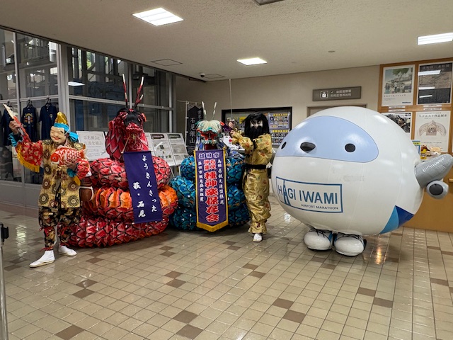 萩・石見空港では搭乗客の皆さまを『石見神楽』でお出迎えをしている日があるのです。